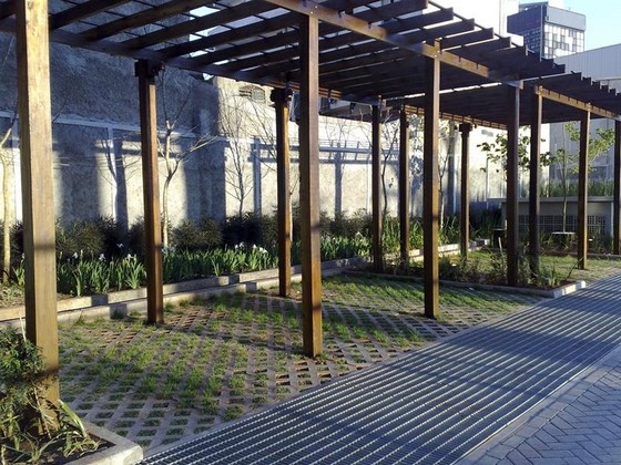 Os bloquetes estão disponíveis no formato retangular, são fáceis de encaixar e instalar para formar piso permeável, com grama nos vãos, sem necessidade de contrapiso, que aguentam peso de tráfego intenso e podem ser reutilizados.