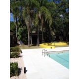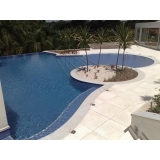 A vantagem deste tipo de piso é que ele não esquenta e fica bem agradável na área da piscina. Este é um grande diferencial, já que confere bastante conforto térmico para a área do parque aquático.